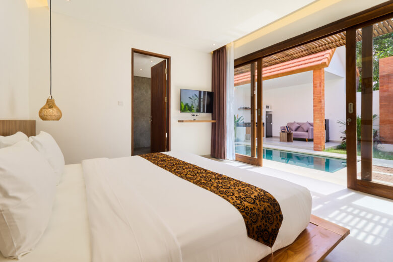 Featuring a single room overlooking the swimming pool, providing guests with a sense of space and privacy. The bedroom is equipped with a comfortable king-sized bed, crisp linens, and fluffy pillows to ensure a restful night’s sleep. The villa has a private kitchen, garden, as well as private bathroom with bathtub.